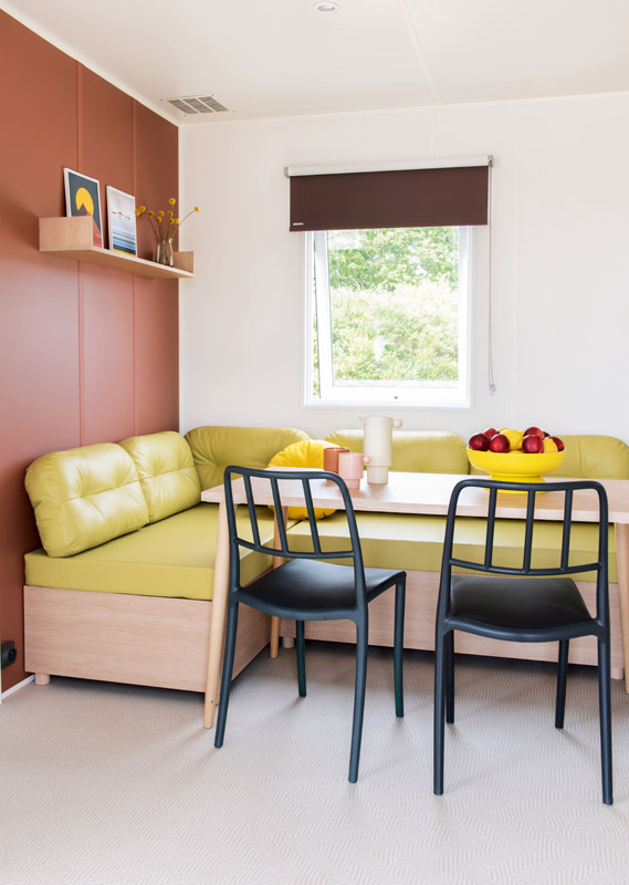 - 1 coin salon avec banquette, table et chaises, placard de rangement